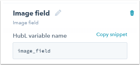 - If you're in the field inspector, click Copy snippet on the right of the field's HubL variable name.