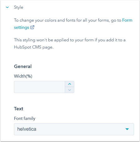 Please note: themes and styles set in the form editor will only apply to embedded forms or standalone form pages. Forms on your HubSpot pages can only be styled with the form module style options in the content editor.