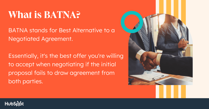 Ultimately, leveraging BATNA will help empower your team to ensure they're walking into negotiations with the information they need to succeed: Including your company's best-case scenario, your prospect's best-case scenario, and the agreement that will provide maximum value to both your business and your customer.