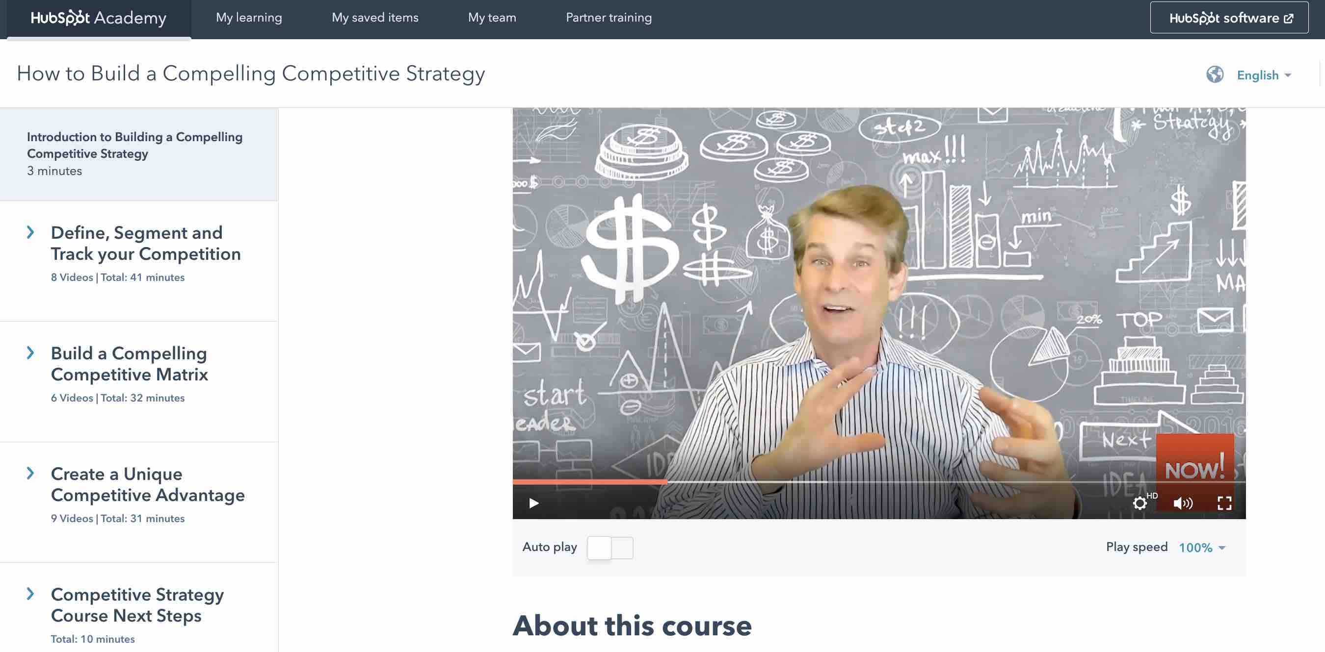 Well, HubSpot offers a course that teaches you how to create a competitive strategy. You’ll learn how to take crucial steps to build a powerful advantage.