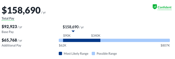As mentioned, the role of a sales director is a very demanding one. So, no wonder it pays well. As of August 2022, the median total pay for a sales director in the United States is $158,690 (of which $65,768 are bonuses, commissions, and tips).